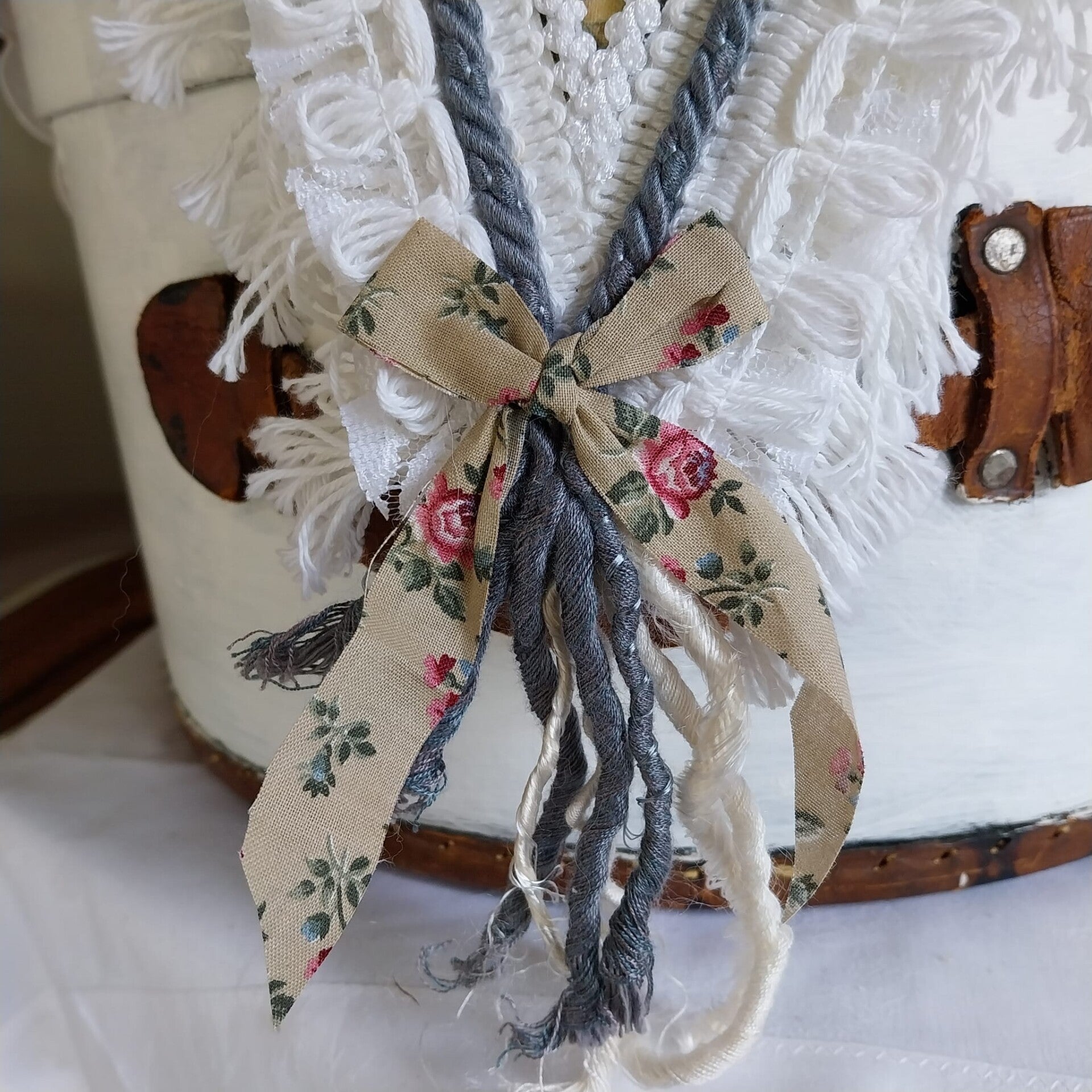 Auch dieser Wimpel ist aus wattiertem Baumwollstoff .Mit Vintage Materialien verziert ,Kordel ,Posamenten,Baumwollborte.Und einem ganz allerliebsten Weihnachtsstoffbild im Nostalgiestil.