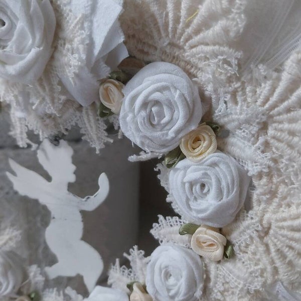 Alles in Weiß und Creme gehalten . Zauberhafter Wandschmuck.